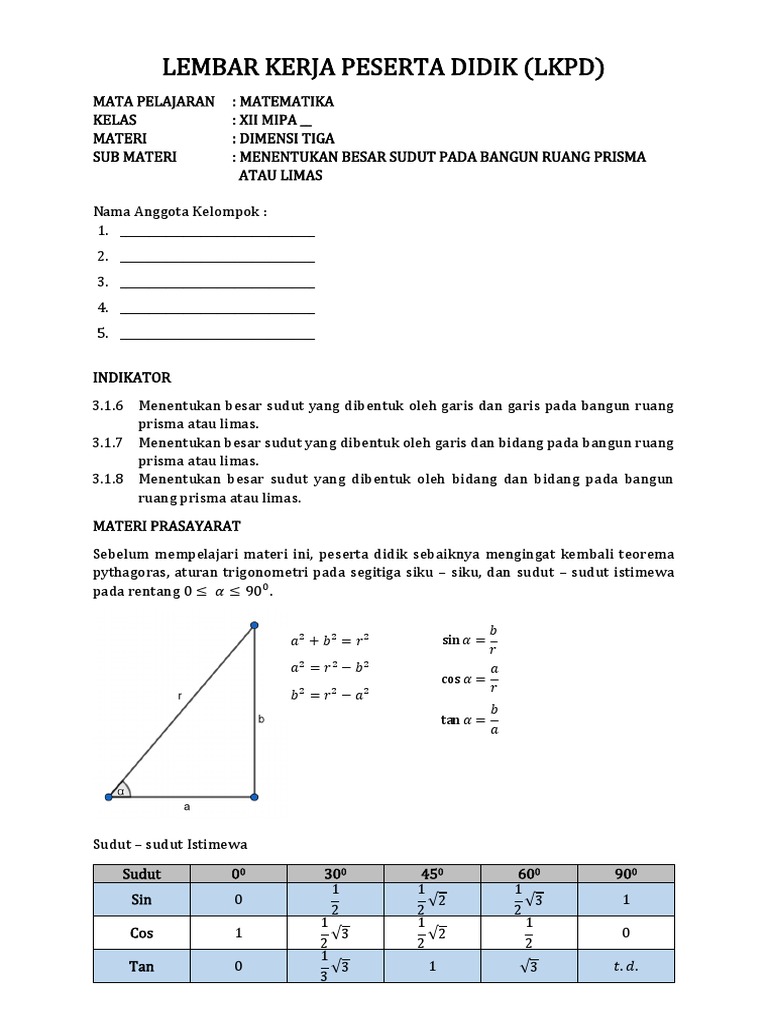 Untuk mengunduh file gunakan tombol download yang tersedia kemudian buka Link download yang muncul. Dimensi tiga merupakan salah satu ilmu Matematika tentang wacana bidang titik serta garis yang berdiri pada ruang dan cara bekerjasama diantara sudut dengan jarak. Materi ini dipelajari oleh siswai jurusan MIPA saat kelas 12 mata pelajaran Matematika Peminatan.