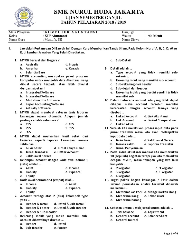 Soal Midle Semester Gasal Myob Kelas 12. Soal Akuntansi Kelas 12 Smk Beserta JawabanUntuk mengunduh file gunakan tombol download yang tersedia kemudian buka Link download yang muncul. Pilihan Ganda Piutang Wesel.