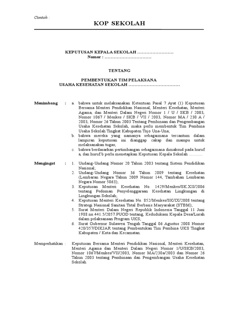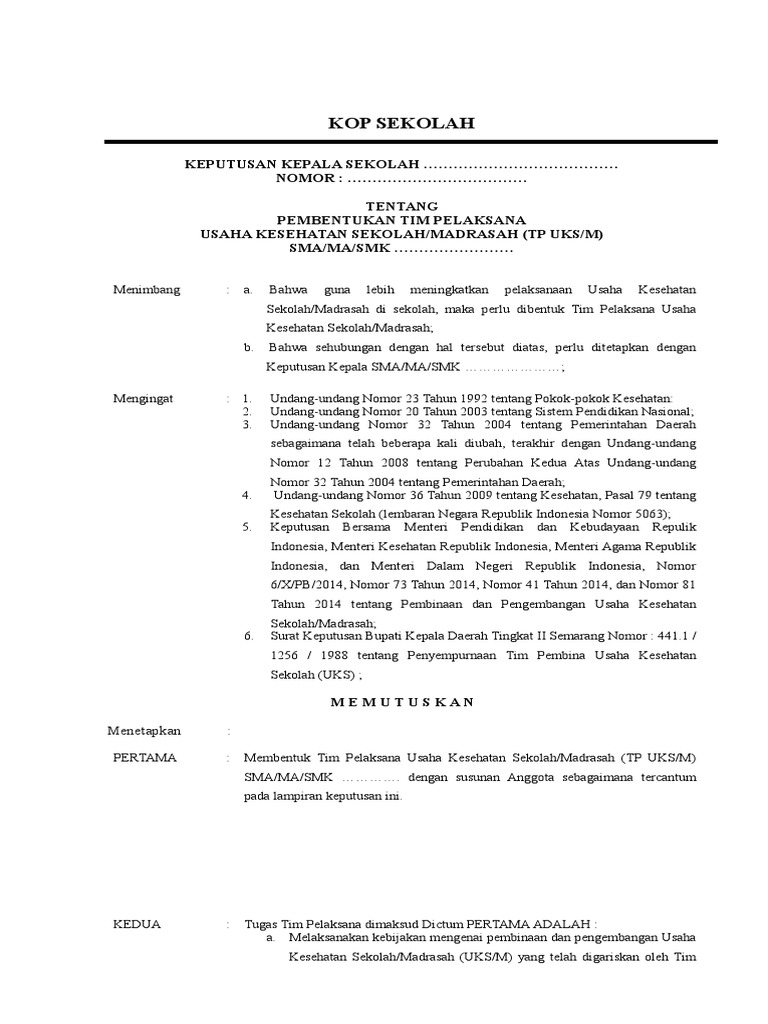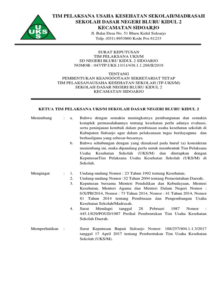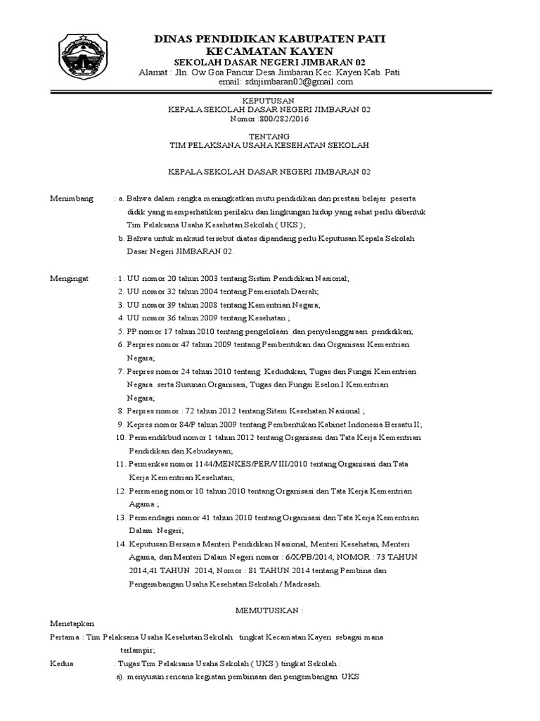 Tim pembina usaha kesehatan sekolah tp uks. SK Tim UKS di buat untuk. Sk Tim Pelaksana Uks Sd Jimbaran 02.